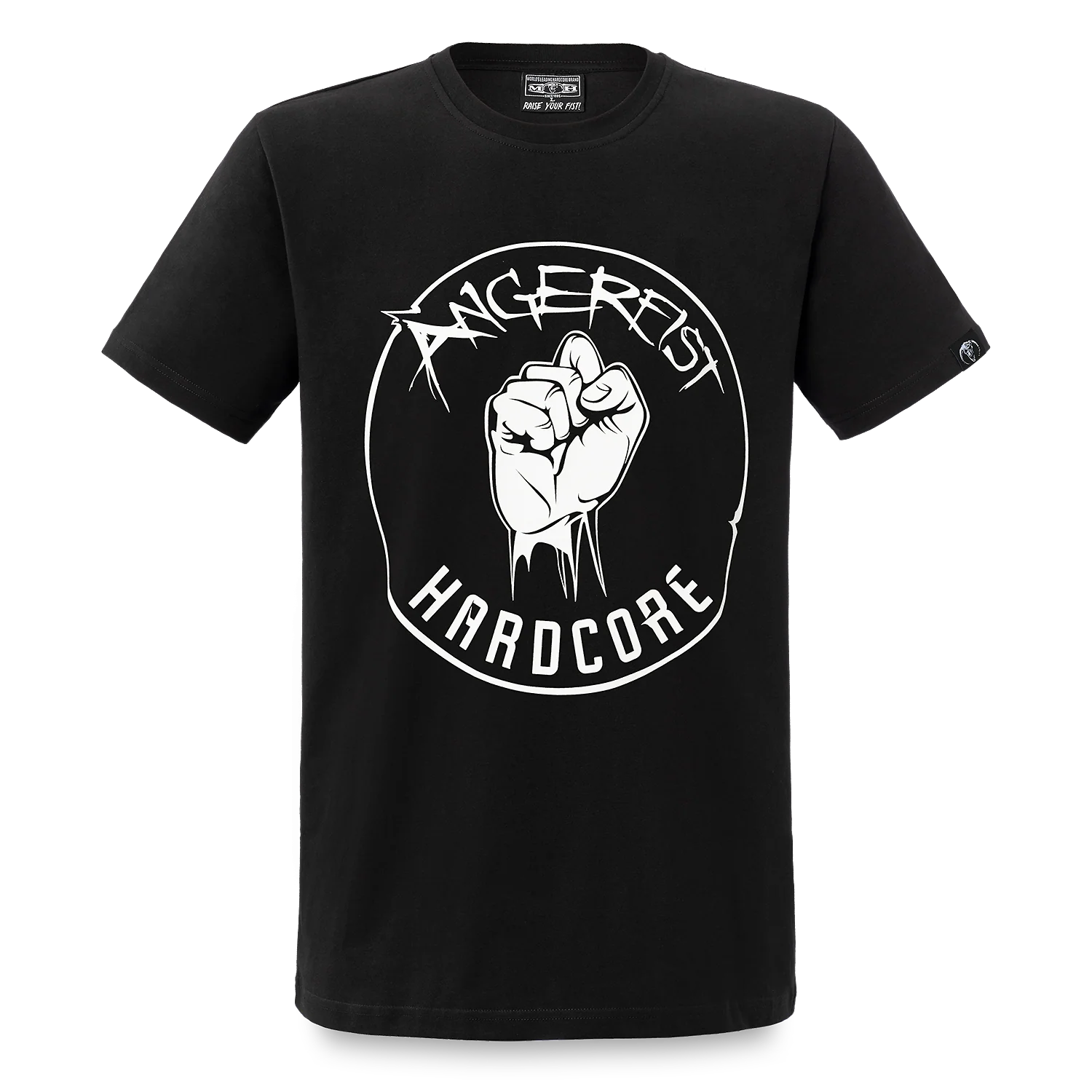 “RAISE YOUR FIST” is Angerfist’s signature catchphrase and now you can wear it everywhere you go and show your support to the masked man. This t-shirt features the famous round Angerfist hardcore logo on the front side and “raise your fist” on the back.