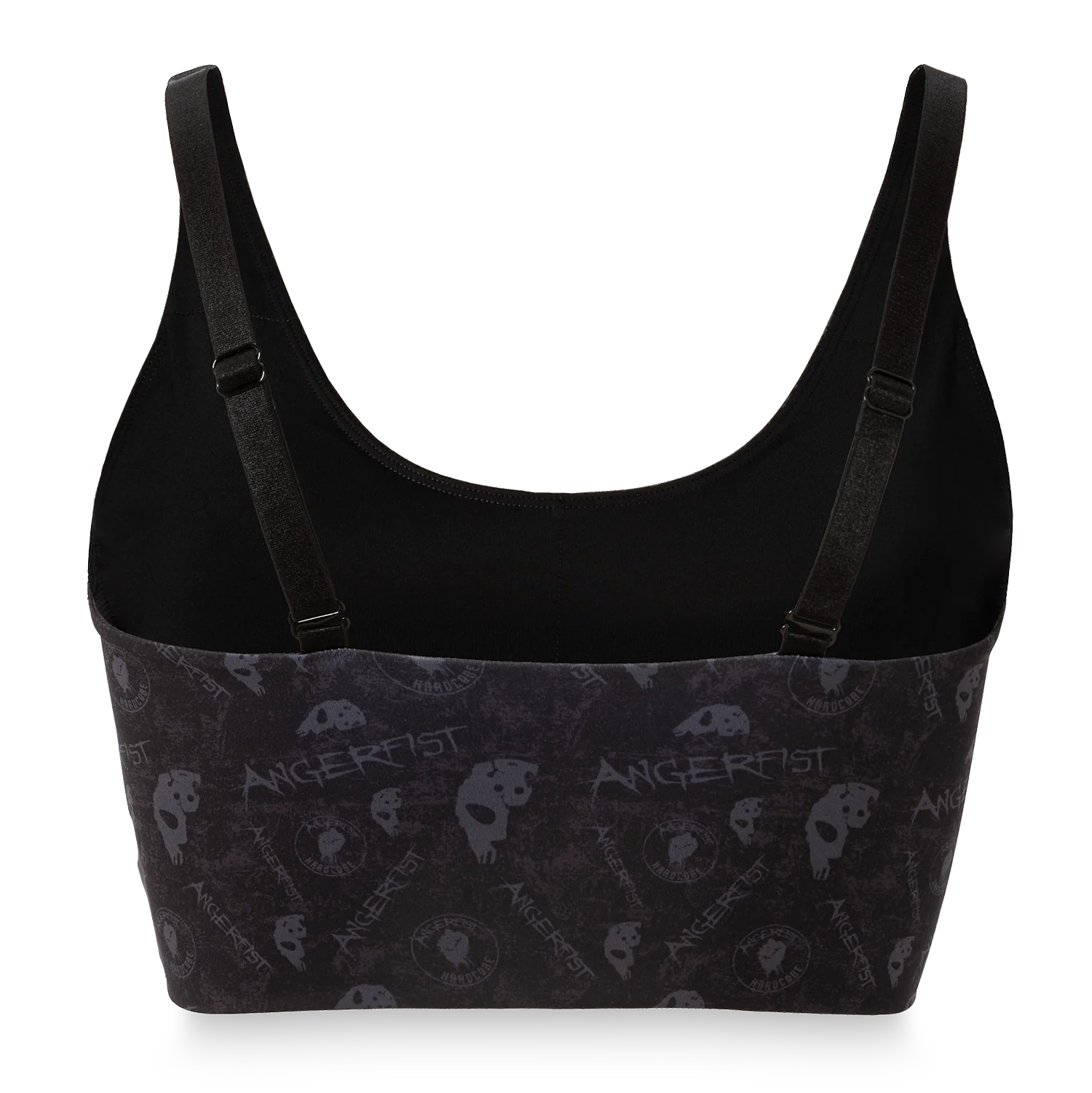 Built for movement, powered by mayhem. This Angerfist sport top brings comfort and chaos together in one brutal design. Featuring an all-over Angerfist pattern and a bold logo printed on the elastic band, it delivers support with a statement.