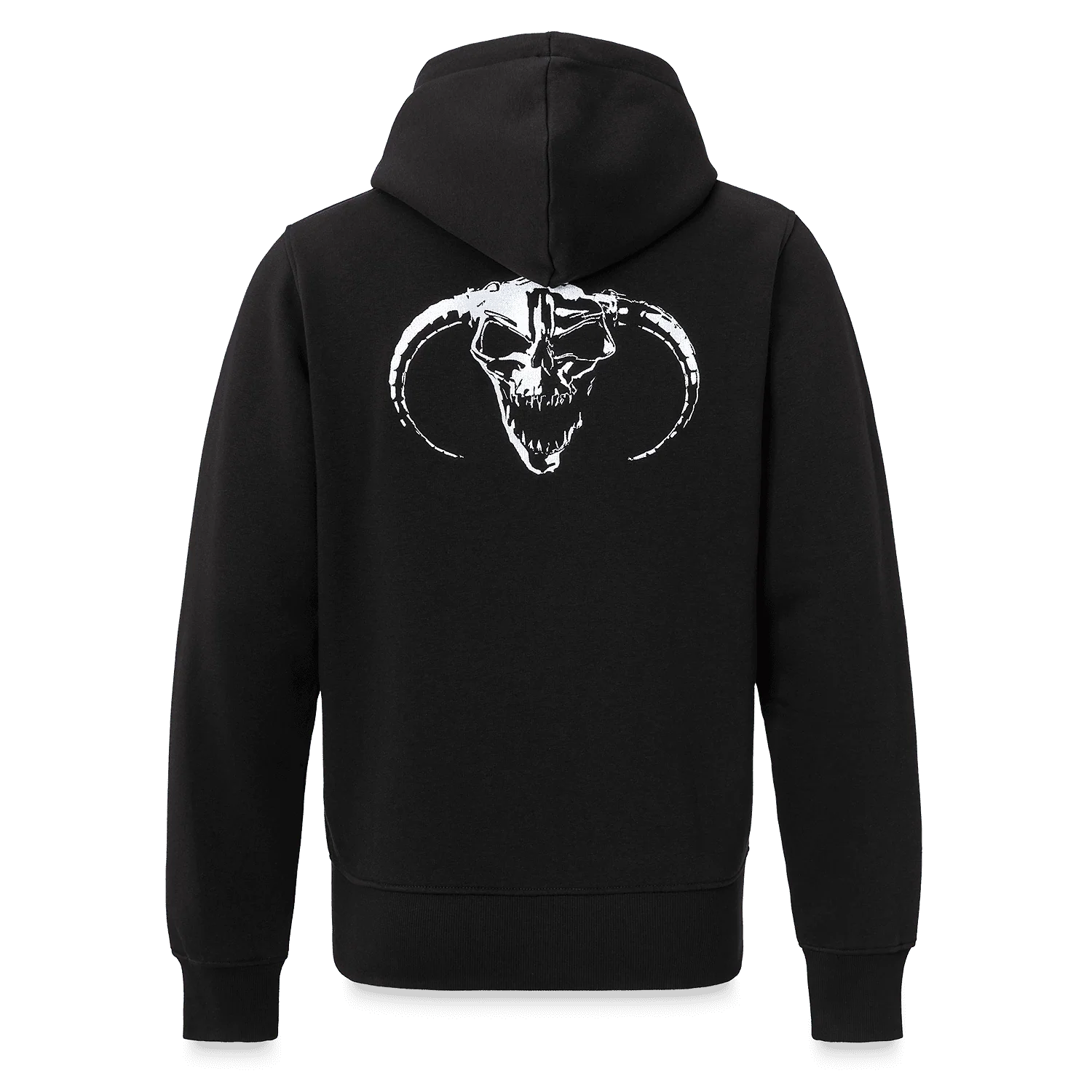 This hardcore essential features a small original logo on the chest and a large skull on the back.