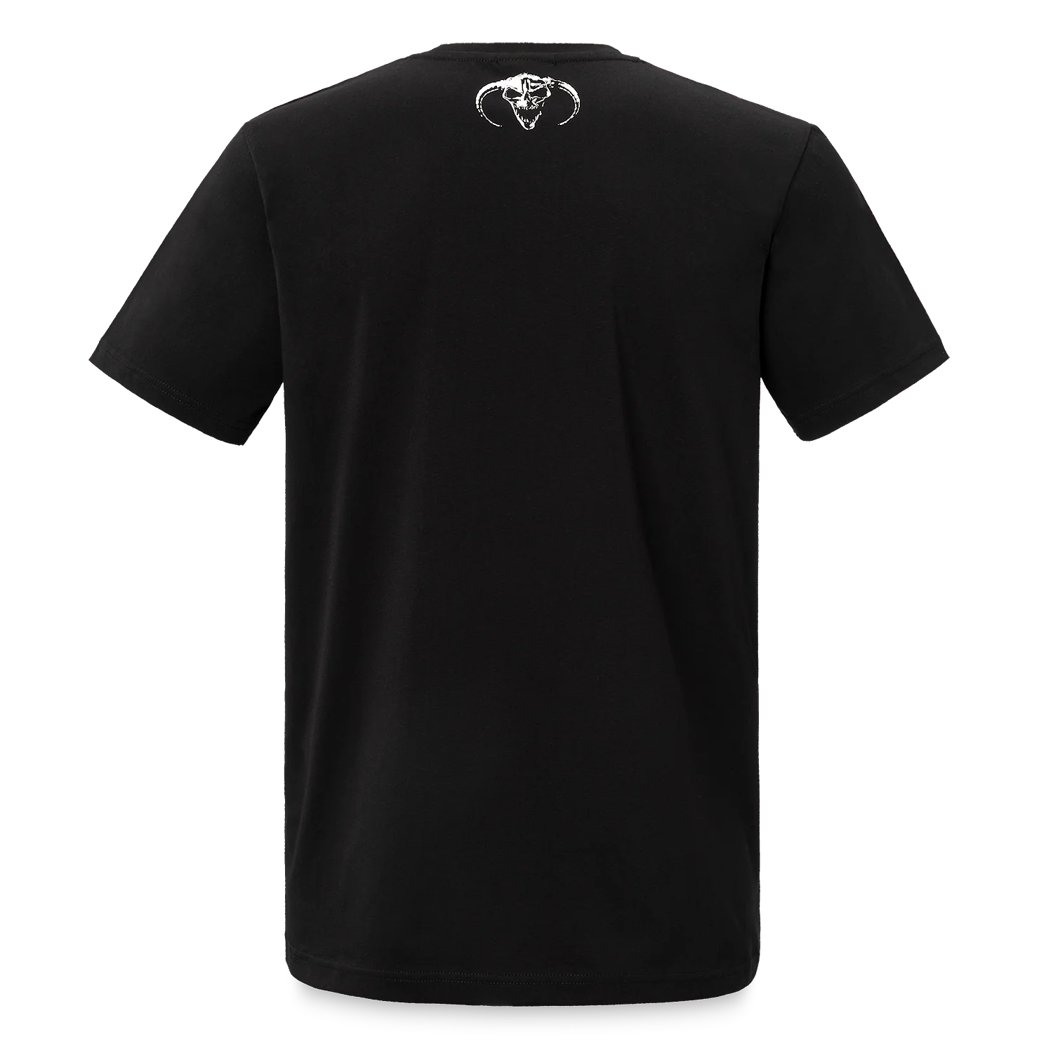 This black Masters of Hardcore T-shirt is built with a clean cut and a hard graphic focus. The front features a large vertical “The Darkness” print with skull artwork. The back is finished with a small MOH mark at the upper back, keeping the layout balanced and direct.